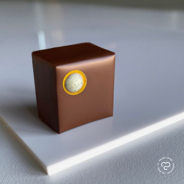 Coconut and passion fruit are one of those duos that stand out for their deliciousness. These two tropical fruits always create a tangy, nutty, and texture-rich flavor profile worthy of the most delicious desserts. This two-layer enrobed bonbon plays with a toasted coconut almond marzipan (one of Chef Melissa’s favorite confections) and a milk and […]